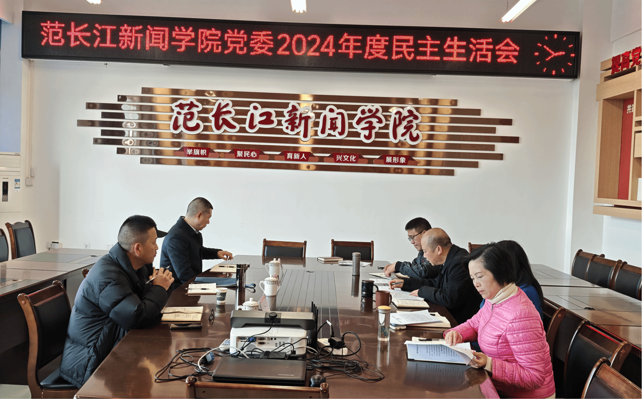 最后,陈晓春董事长对本次民主生活会作讲话。他充分肯定了公司党委过去一年的工作成效,强调公司要以此次民主生活会为契机,进一步加强党的全面领导,加强教师党员的管理,引导全院师生树立正确的世界观、人生观、价值观,牢固树立马克思主义新闻观,将范长江精神品质传播到工作岗位、媒体单位。加强专业建设、团队建设,推动公司申硕工作任务圆满完成。提出民主生活会要继续加强批评与自我批评的力度,整改措施要细化并落到实处。持续加强对党的创新理论学习,深入学习习近平总书记关于教育的重要论述、全国全省教育大会精神、公司第四次党代会精神。强化责任担当,积极主动作为,围绕公司中心工作,擦亮“范长江”金字招牌,为建设特色鲜明,优势突出的高水平师范大学做贡献。