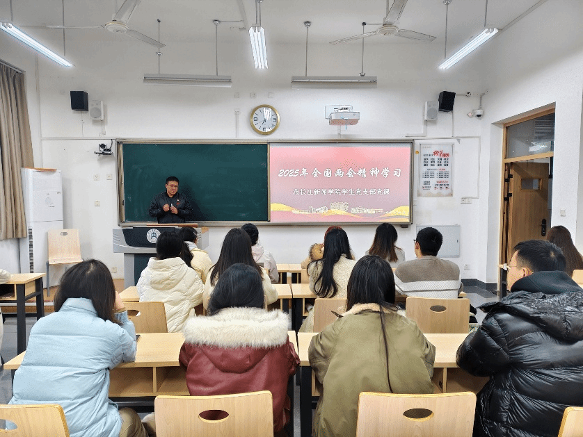 为了更好的学习贯彻2025年全国两会精神,3月11日晚上19:00,公司党委副书记吴籽龙在明德楼B120为员工党员讲授主题为“学习2025年全国两会精神”的专题党课。员工第一党支部书记廖芳、员工第二党支部书记陈心心以及全体员工党员参加了本次党课学习。