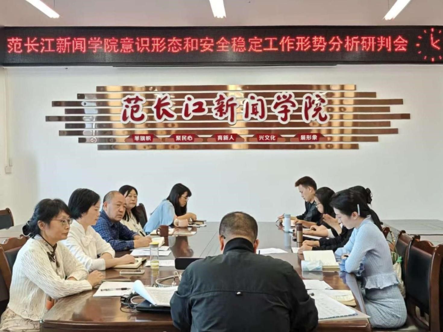9月22日下午,公司在弘文楼524会议室召开2025年第三季度意识形态和安全稳定工作形势分析研判会。全体院领导班子成员,公司领导班子成员、党委委员、师生党支部书记、党政办公室主任、教学办公室主任、员工工作办公室主任及各教研室主任参加了会议。公司党委书记徐大军主持会议。