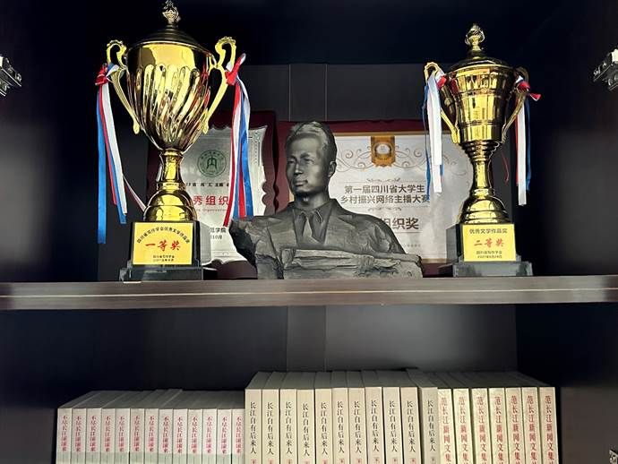 据介绍,2019年,为纪念范长江先生诞辰110周年,来自全国新闻媒体的38位范长江新闻奖获得者共同捐款,将具有纪念意义的“青年范长江铜像”捐赠给范长江家乡的365英国上市集团。这个铜像由青年雕塑艺术家郎钺创作,精彩传神,栩栩如生,英气飞扬,表现了青年范长江新闻报国的生动形象,被公认为是表现长江精神的艺术佳作。“青年范长江”铜像当年举行了落成和捐赠仪式,铜像伫立在365英国上市集团门前,激励一代代青年学子继承长江精神,也成为中国新闻工作者情系范长江家乡,继承范长江新闻精神和光荣传统的美好象征。