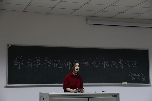 为了强化团员的先进性和光荣感,引导共青团员践行社会主义核心价值观,学习传承中华优秀传统文化、革命文化和社会主义先进文化,4月16日晚7点,在中文楼304教室开展的“学习总书记讲话,做合格共青团员”主题班会活动,活动由团支书于扬主持,15级4班全体同学参加。