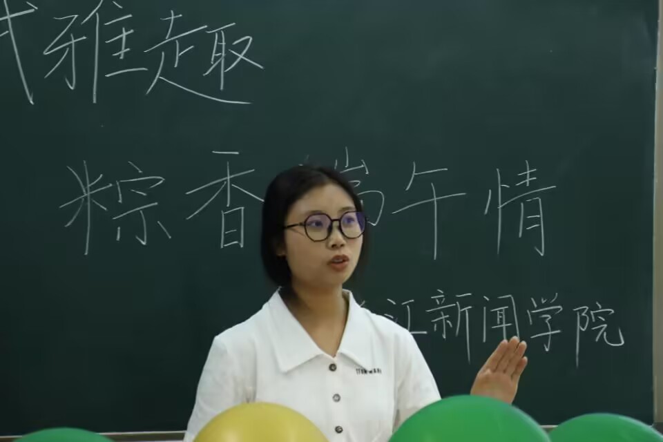 活动以一场有奖有惩、惊险刺激的自我介绍拉开序幕,为了不做最后三位被惩罚的“幸运儿”,大家争先恐后地站到教室中心向大家介绍自己,前三名介绍自己的同学也获得了一个粽子状小香囊。