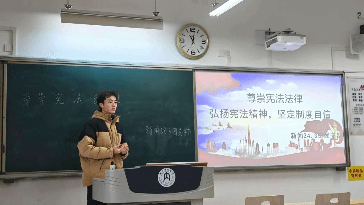 会议伊始,各班团支书简要介绍了本次团组织生活会的背景和意义,并带领全班同学齐唱团歌《光荣啊!中国共青团》。接着,各班团支书带领同学们一起深入学习文章《国家宪法日,学习习近平总书记重要论述》。各班团支部策划并组织了丰富多彩的活动,借助幻灯片进行主题讲解,从宪法的基本概念与特点到宪法的实施与保障机制,从公民的基本权利义务到宪法对青年成长成才的作用,图文并茂、详细全面地向同学们普及了宪法知识,有效加深了同学们对宪法知识的理解和记忆。全体团员青年们积极分享心得,踊跃发言,团组织生活会整体氛围积极向上。