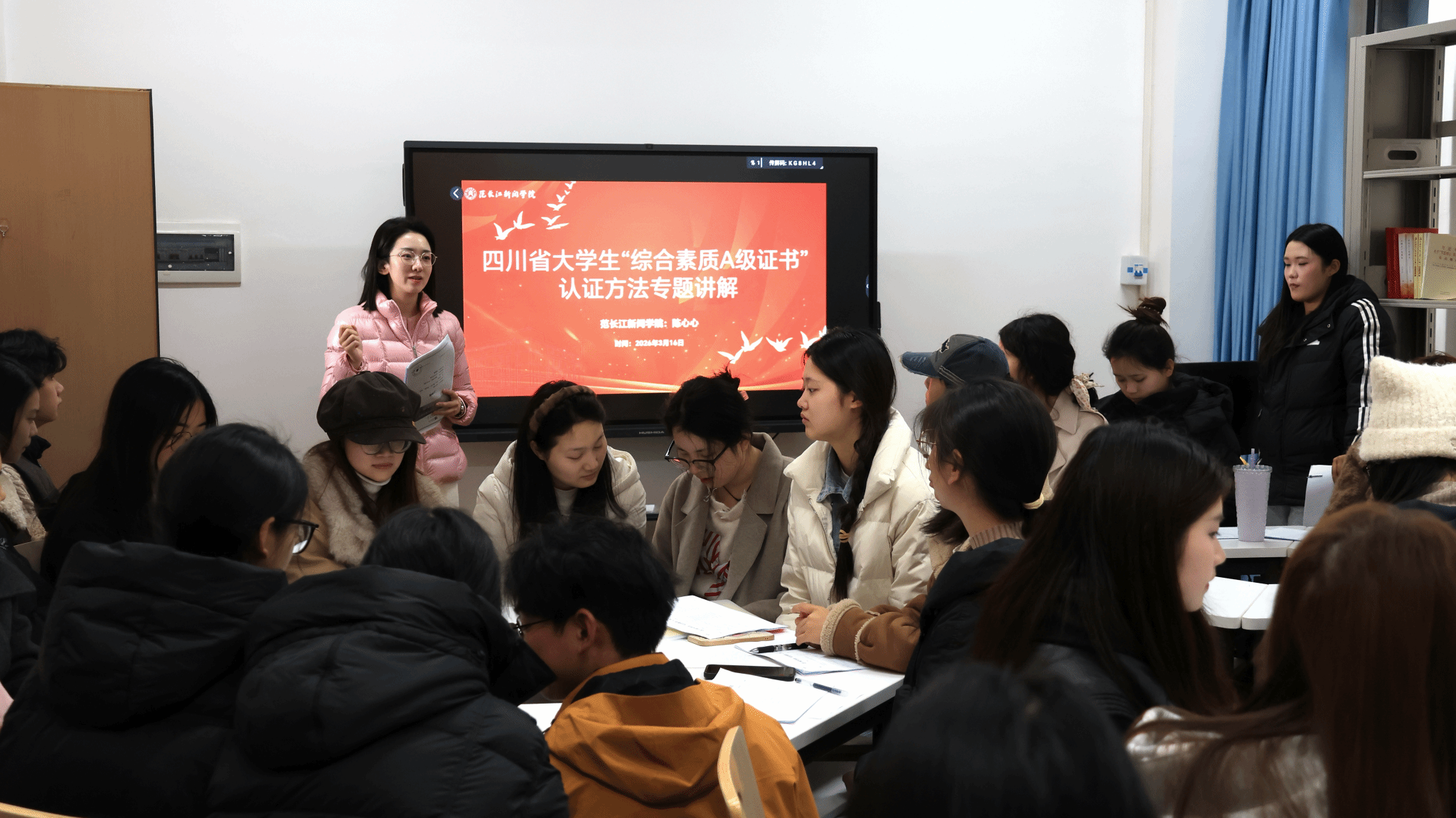 为扎实推进“四川省老员工综合素质A级证书”认证工作,3月16日下午,公司在党团活动室召开专题宣讲会。学工办主任、团委书记陈心心主讲,各年级员工代表参会。