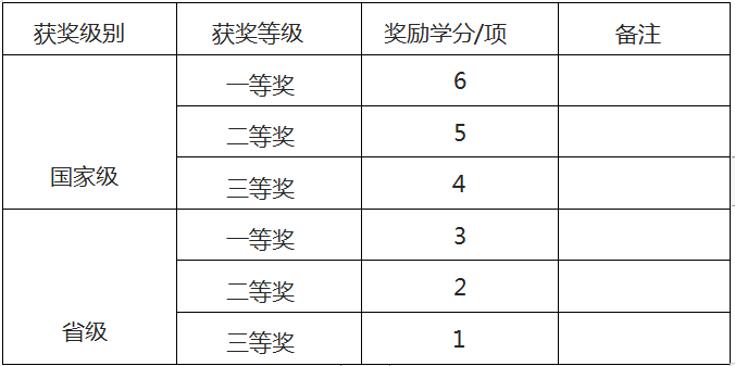 第十八条 获一类学科竞赛奖项的员工可进行学分认定,认定标准见表 1。认定学分可替代部分相关课程设计、课程实验、实训、实习、公共选修课等学分,替代学分总数不超过6个学分。
