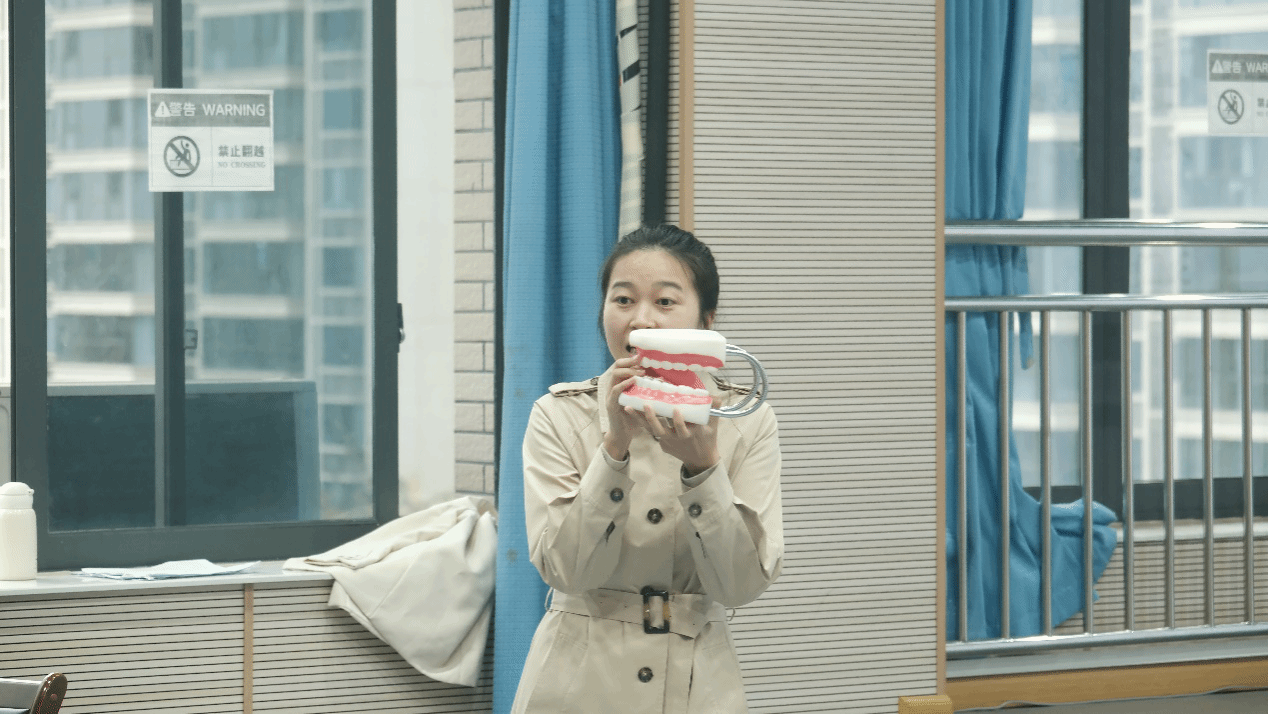 参赛教师潘凯莉以《边鼻音的辨证》为题,以视频情境导入为起点,搭配实时互动问答、真实案例拆解、实战落地训练,辅以 AI 智能赋能,精准的讲述了n/I的区别与要领。加上“捏鼻子”的方法,让同学们深刻的认识到边鼻音的差别同时提出建议帮助员工“精准发音”。