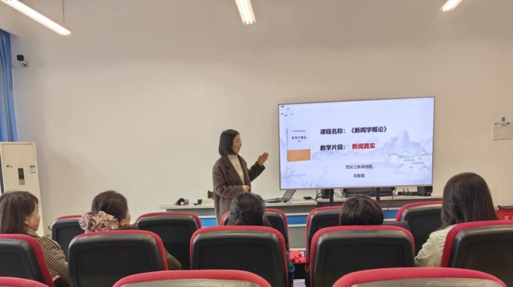为促进青年教师教学能力提升,深化课程教学内容与方法的交流,新闻传播教研室于12月29日组织了青年教师说课观摩研讨活动。本次活动聚焦于《新闻学概论》课程的核心知识点“新闻真实”,由青年教师毛敬莲进行说课展示,教研室部分教师参与观摩并开展评议指导。