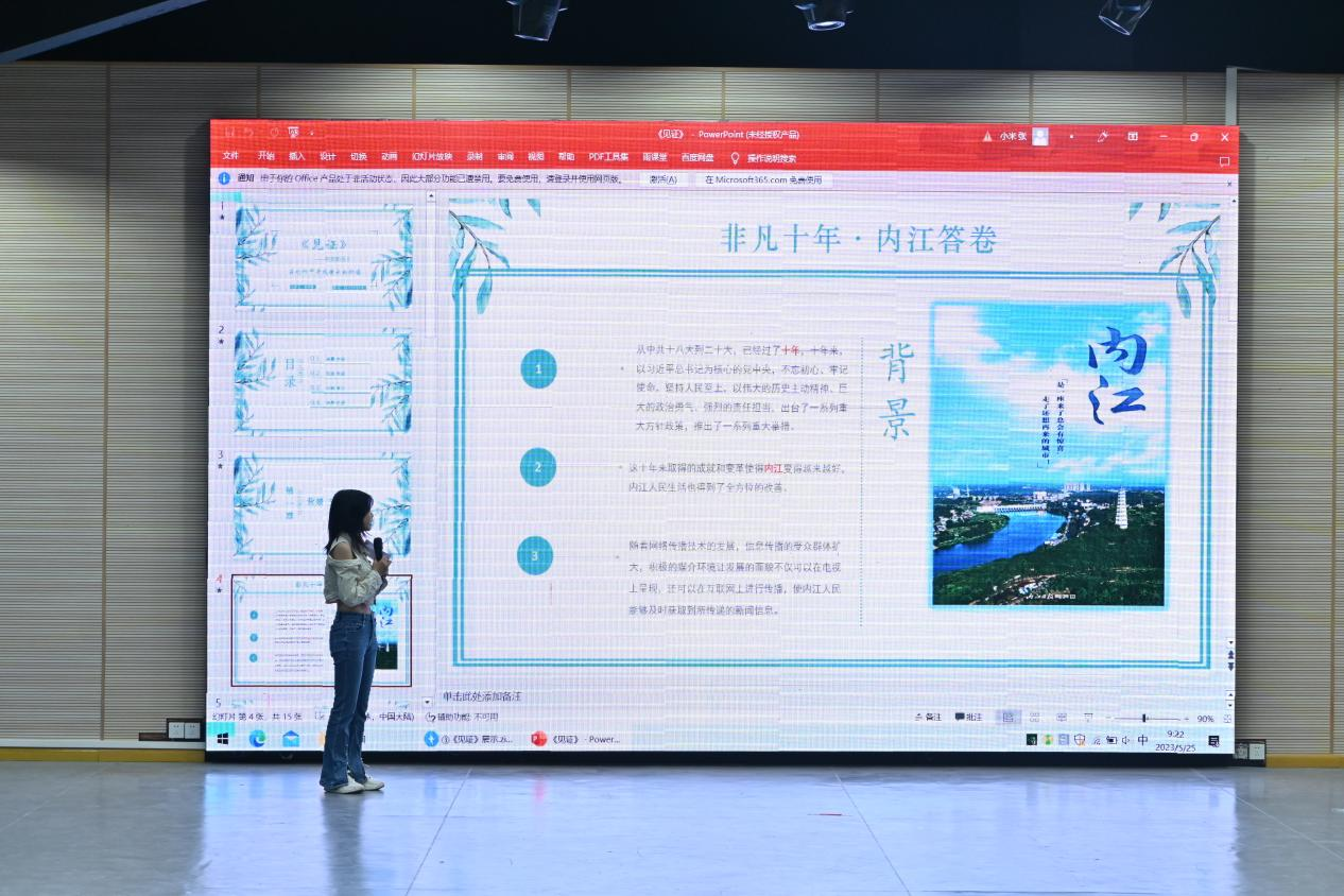 电视新闻《见证》结合脱贫攻坚的时代背景,讲述了内江市黄桷桥村从2012年到2022年的发展变化,在内江乡村振兴发展中具有典型性。主讲人周晓晓同学说:“尽管在拍摄的过程中遇到了很多困难,但我们在拍摄过程中寻找到了拿起相机的价值,也提升了自己的能力”。刘佳老师肯定了《见证》的选题,并对同学们提出了建议,“希望同学们不要局限于公司,更多地从社会视角出发,把自己当作真正的媒体人,关注社会上的热点话题。”