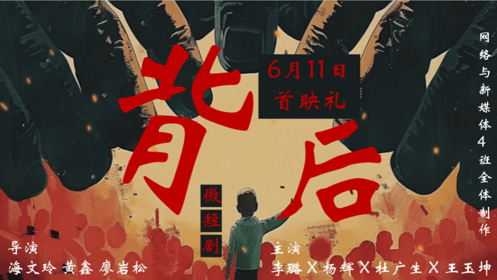 6月11日,公司网络与新媒体专业2022级4班的同学和指导老师崔茹茹在弘文楼539举行原创短剧《背后》的首映礼,陈佳老师和周祯妮老师作为嘉宾参加此次首映礼。