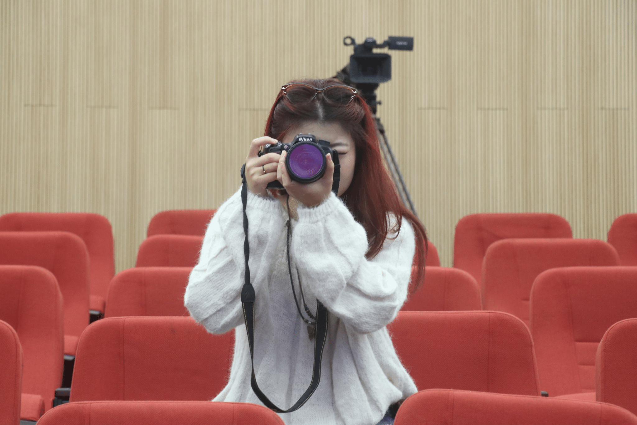 拍摄组组长李婷正在拍摄闭幕式彩排