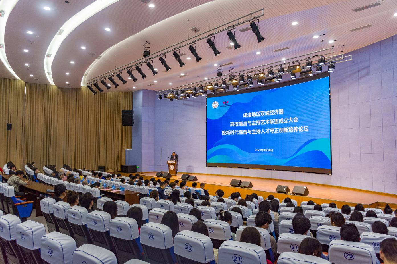 为切实推进成渝地区播音主持人才培养高质量发展,以促进学界与业界在人才培养、联合创作、服务地方经济社会发展与相关领域的研究与合作,4月28日,30所成渝地区高校齐聚重庆对外经贸公司,召开成渝地区双城经济圈高校播音与主持艺术联盟成立大会。本次活动由重庆市教育委员会体育卫生艺术教育处指导,成渝地区双城经济圈高校播音与主持艺术联盟、重庆对外经贸公司主办。公司教师侯鑫受邀参加本次会议。